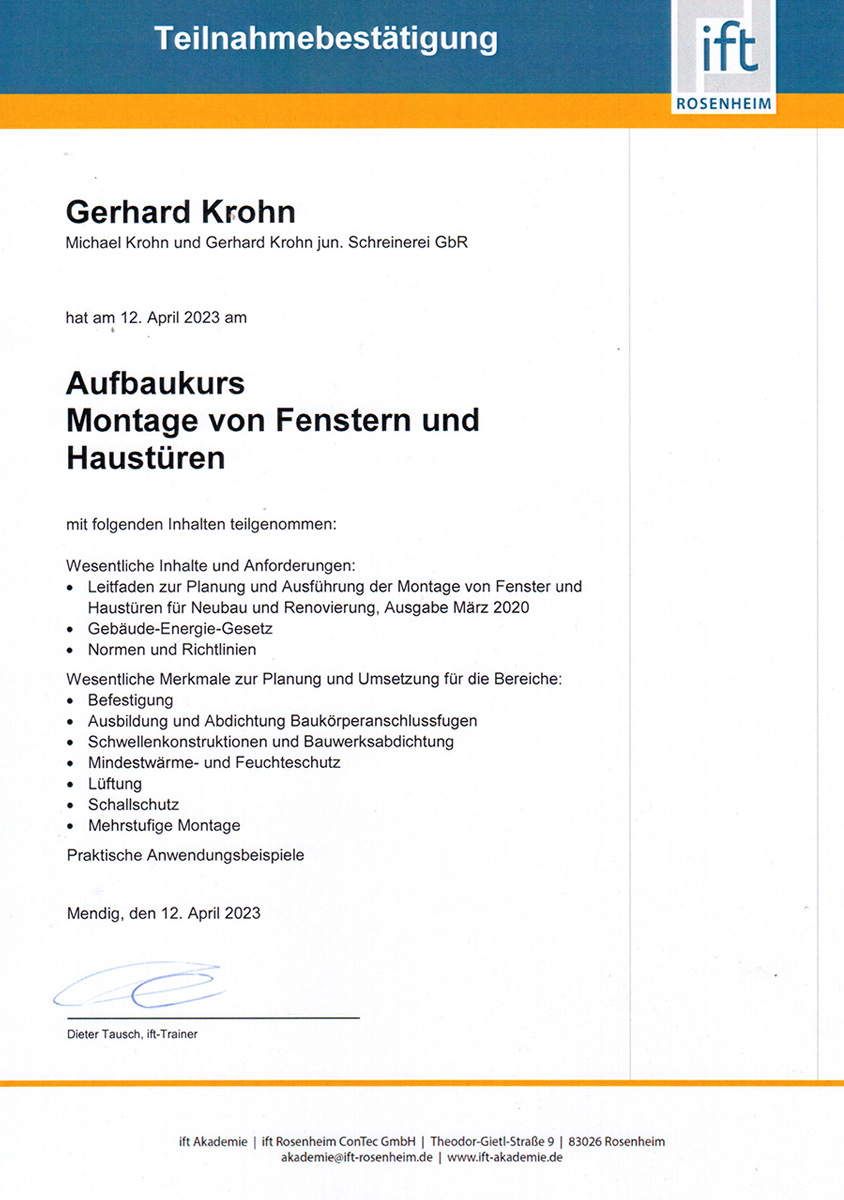 Errichter Aufbauschulung, Nachrüstung im Falz - Michael Krohn
